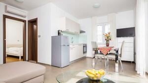 Vista Apartments are located half a kilometer from the sea as well as from the city center, catamaran or bus station. Apartments have a private bathroom with shower, toilet and washing machine. Living room has a comfortable sofa bed serves as an extra bed for two children or one adult. Part of living room is fully equipped kitchen as well that has an oven, kettle and fridge.